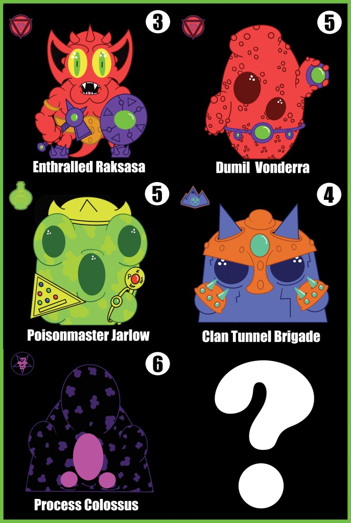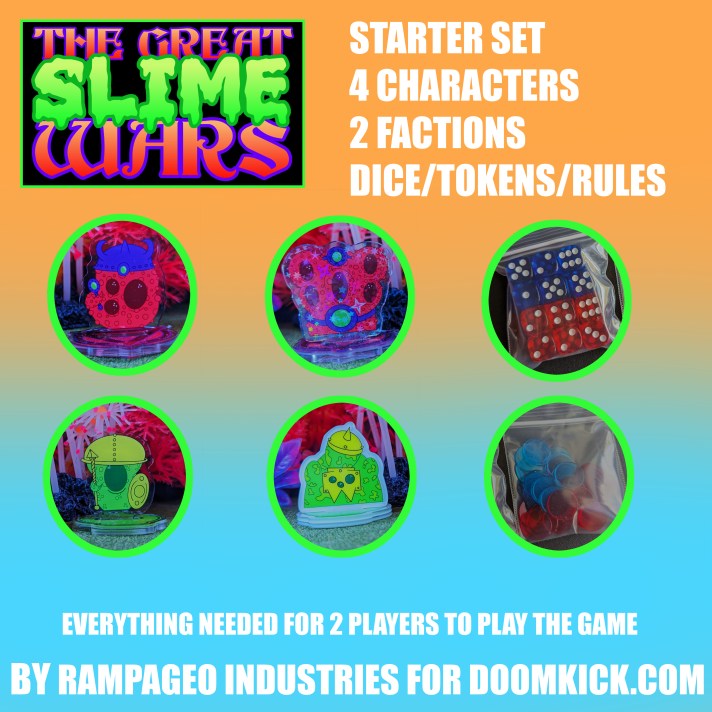 Hey Gang! Exciting news! Soon The Great Slime Wars will be expanding! I just sent 5 new characters off to be made into standees. I have also updated various pages related to the game. So let’s take a look at what’s changed then I’ll run down what’s coming soon! Read on for more…
